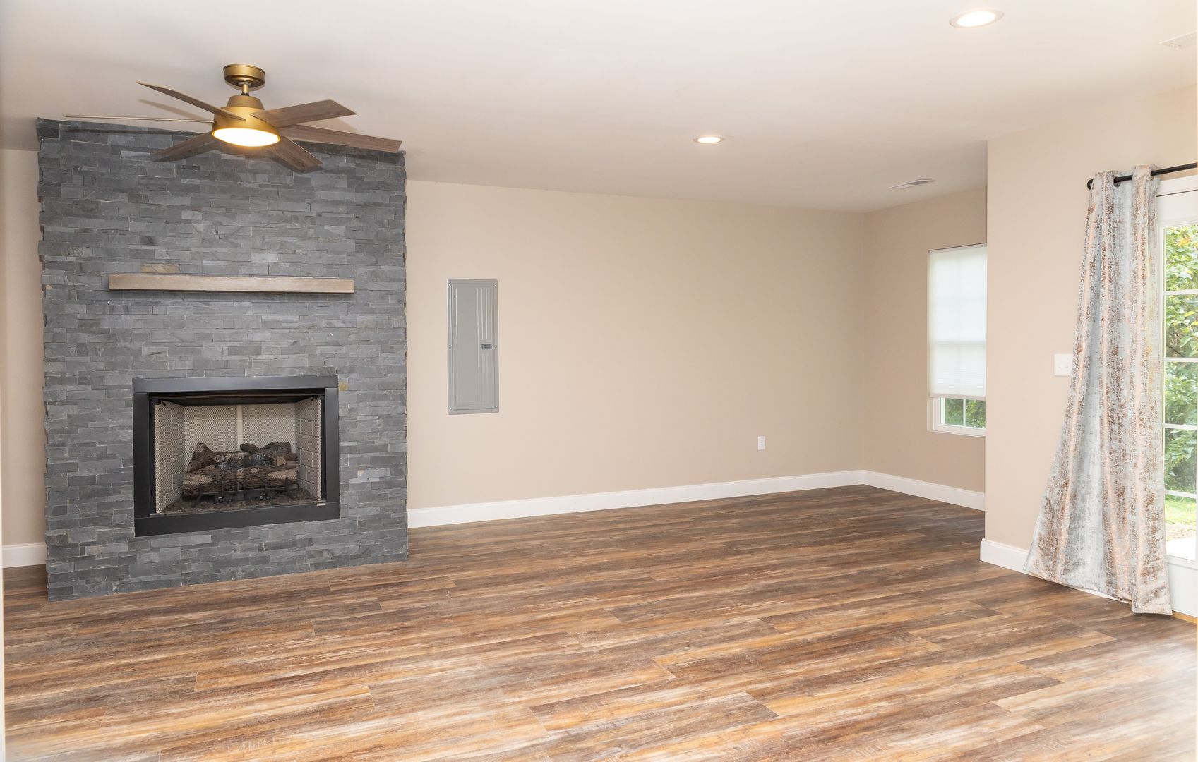 Cozy fireplace and a covered back porch for year-round comfort